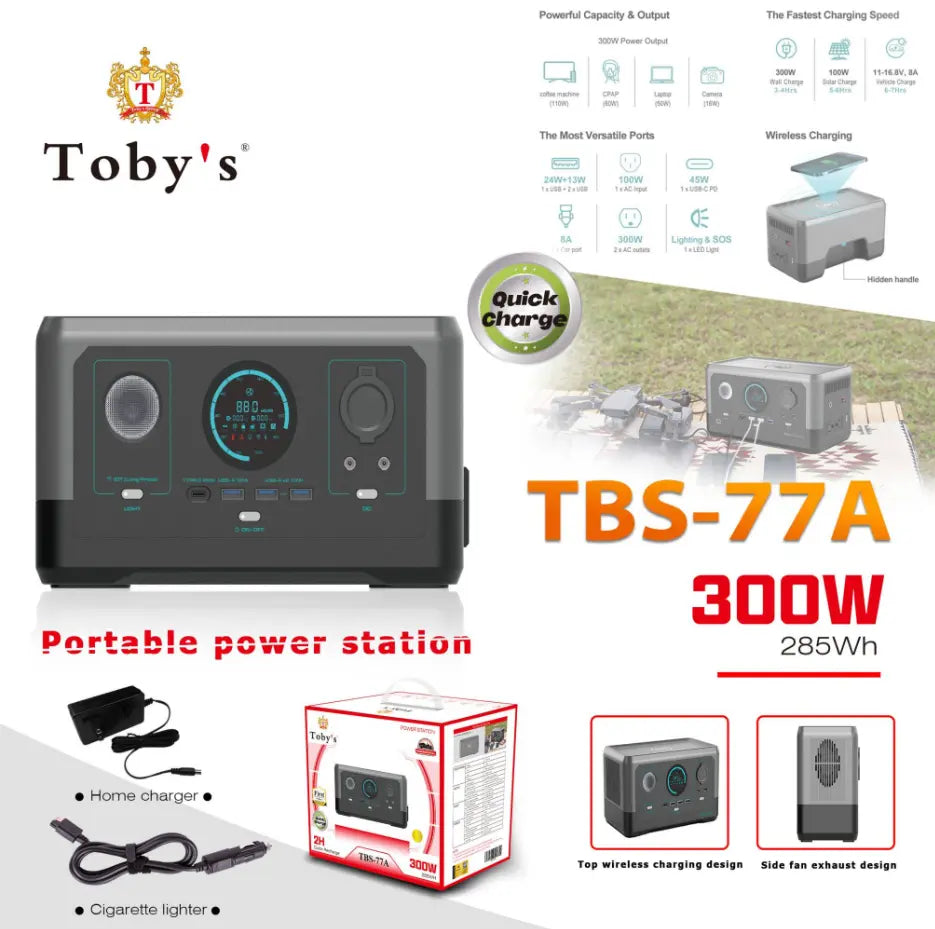 - Power Your Outdoor Life, Toby’s portable power station, is equipped with 285Wh capacity, peak 600W, silent cooling fan, built-in 3-level LED light and SOS mode to satisfy your outdoor needs.