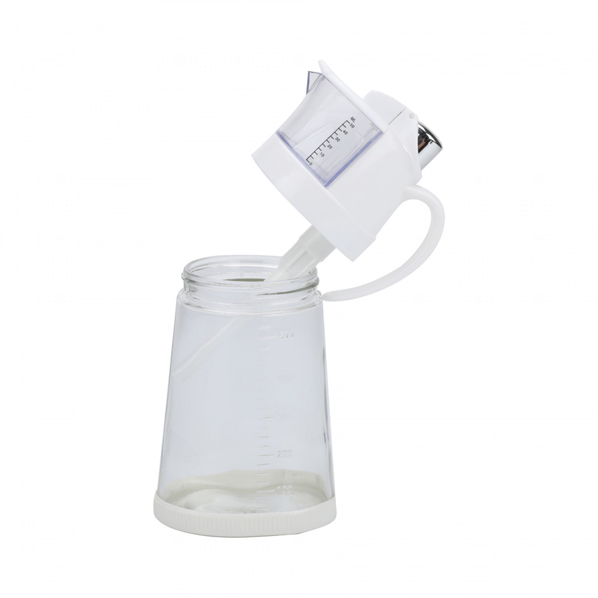 عبوة قياسيه للزيت الحجم : 10.5*8*20.8 سم السعه : 550مل . كوب قياسي :50 مل ، عبوة زجاجية : 500مل الوزن : 472 جم مادة التصنيع : زجاج + بلاستيك PP + AS المميزات : 1. يمكن تعبئتها بالزيوت ، بالخل ، الصوص او اي بهار سائل . 2. عبوة زجاجية سهلة التنظيف . 3. يمكن التحكم بكمية الزيت ، وفقا الاستخدام وتفادي الكميات الغير مرغوبة . تنبيهات : 1. لا تضع الزيت الساخن في الزجاجه. 2. ابقائها بعيده عن النار . 3. لا تستخدم الاسلاك في تنظيفها قد يحدث خدوش عليها .