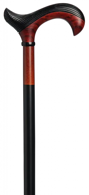 Handmade book cane with DERBY handle by Padouk with a special, hand-milled texture. Black ring, black / mahogany colored, satin finish. Dipping shoe included.