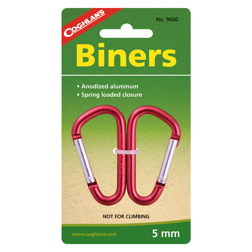 Coghlan's makes the outdoors more comfortable and enjoyable with over 500 accessories for camping, hiking, fishing, and RVing - from cooking gear to first aid kits, insect netting, firestarters, tent repair, and more. Coghlan's makes fun, simple, outdoor products that keep people smiling while they're outside. Trying new things is part of the adventure, we support traditions and encourage fun new experiences. Coghlan's makes the outdoors more enjoyable so you can have more fun outside. From the family camper to the outdoor adventurer - camp cooking, fire starting, mosquito protection, first aid, compasses, rope & cord, storage, repair, rain, and more. We have you covered to make the most of your experience. These Mini Biners are useful for attaching equipment, clothing, keys, tools, and more to packs, canoes, tents, or belts! Not for climbing. Anodized Aluminum. Spring-loaded closure. They are available in three different sizes and come in packs of 2.